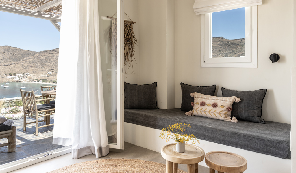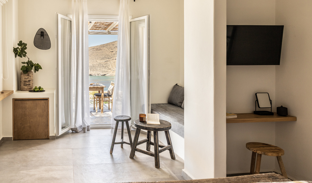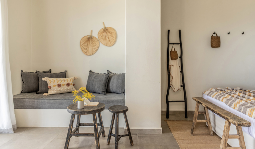 Respecting the natural beauty of the landscape, we've crafted our spaces by following its contours and utilizing materials that seamlessly blend with it, becoming an integral part of the surroundings. Natural coolness and ample light infuse every area and unobstructed vistas of the endless sky and the sea abound, while we maintain a strong commitment to sustainability and offer high-end amenities. We present three unique choices, each with its own distinct style and functionality but all with a shared aim: to provide a haven for your body, senses, and gaze.