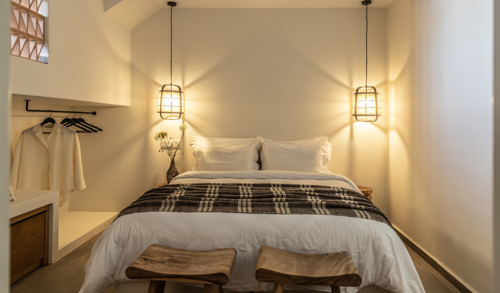 This space is designed for a summer getaway for two, free of unnecessary frills or extras. Inside, every nook is a testament to practicality. As for the outside, it's a seamless extension where you can enjoy the landscape without sacrificing the comforts of your room.